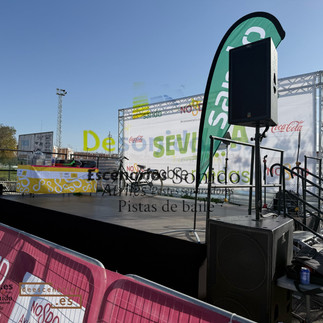 Sevilla celebró un año más, el día de la bicicleta🚴🏻🚴🏻 con una mañana llena de actividades, el palacio de deportes San Pablo a sido de nuevo la ubicación, allí ha estado Desonido.es , con montaje de escenario, sonido y truss trasero para escenario.